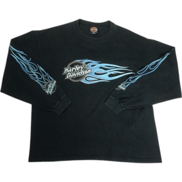 Size【XL】 VINTAGE ヴィンテージ Harley Davidson Shooting Blue Flame LS Tee ロンT 黒 【中古品-良い】 20818598 | STAY246