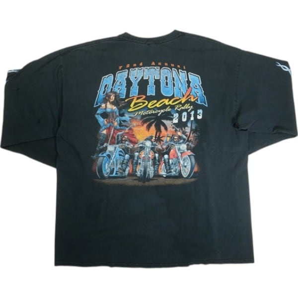 Size【XL】 VINTAGE ヴィンテージ Harley Davidson ハーレーダビッドソン Blue Frame Deytona Beach LS Tee ロンT 黒 【中古品-良い】 20820105