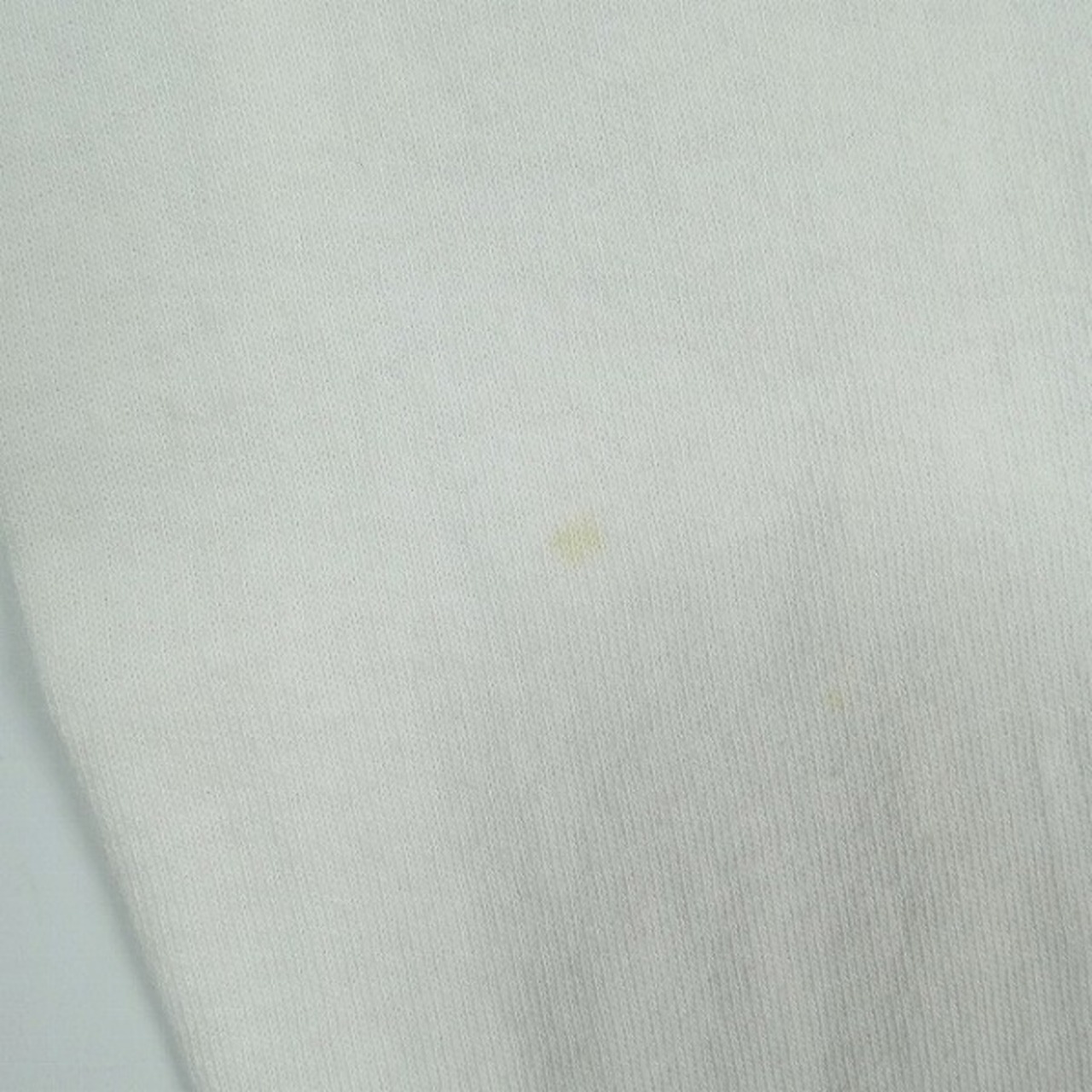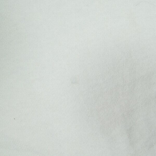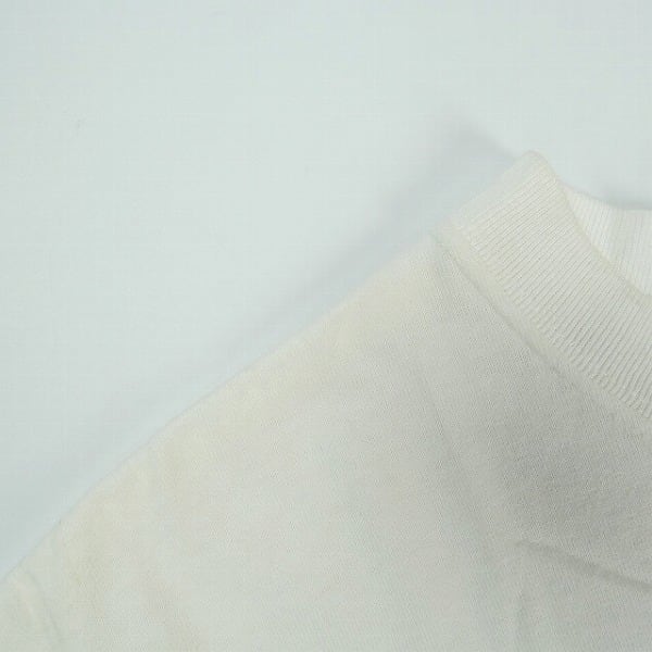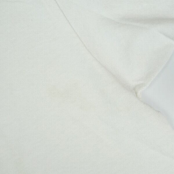 着用感があり、ボディ全体に毛羽立ちや色褪せがあります。首回りや肩に黄ばみがあります。右脇腹付近にシミがあります。ヴィンテージ特有のダメージがあります。
