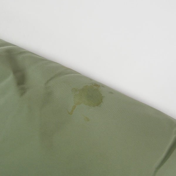 着用感があり、ボディ全体に色褪せがあります。首回りに黄ばみ、袖や袖口付近などシミが複数あります。