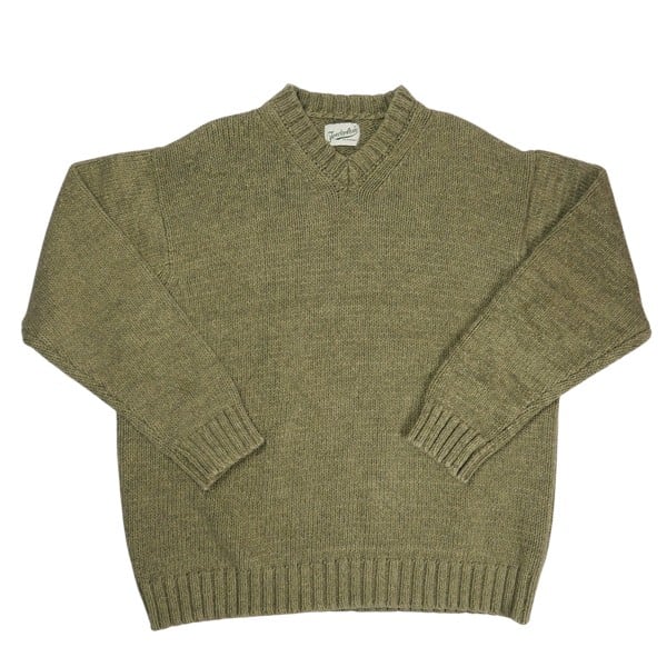 V NECK COTTON KNIT OLIVE ニット