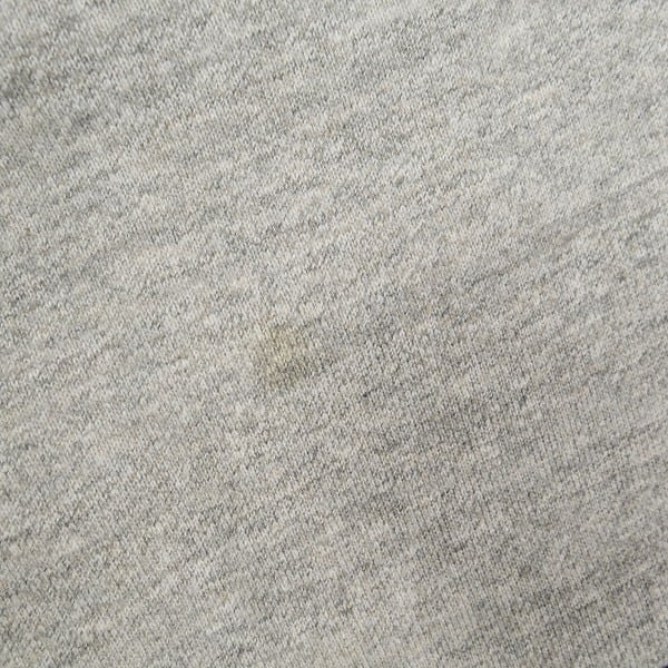 着用感があり、ボディ全体に毛羽立ちや色褪せがあります。フロントに1cm程度のシミがあります。