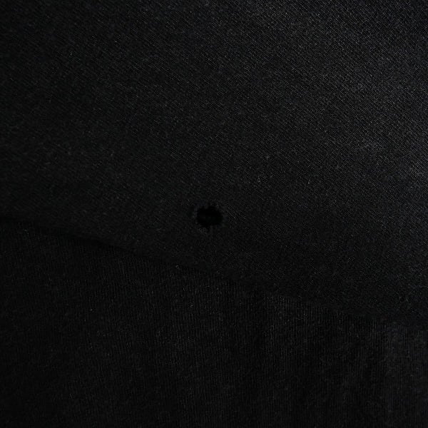 着用感があり、ボディ全体に毛羽立ちや色褪せがあります。プリント部分にひび割れがあります。右袖やフロントに穴があります。