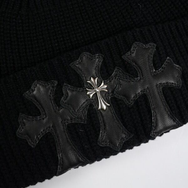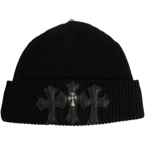 Size【フリー】 CHROME HEARTS クロム・ハーツ Cashmere Triple Leather Cross Patch With Silver Logo Cross Beanie カシミアビーニー 黒 【新古品・未使用品】 20835825