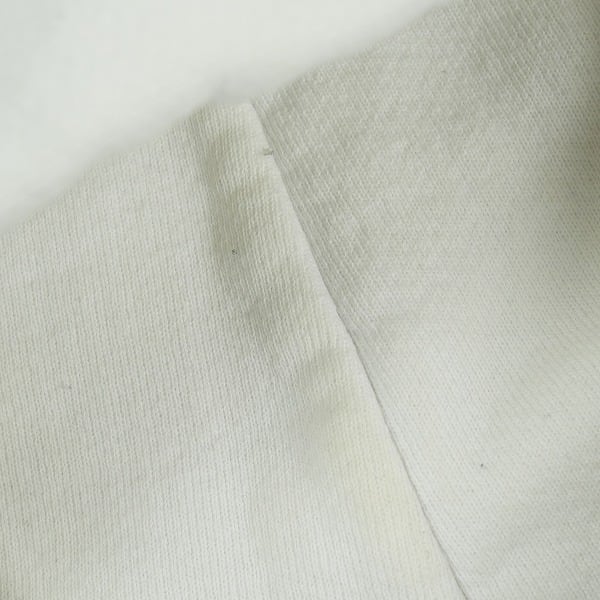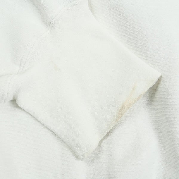 着用感があり、ボディ全体に毛羽立ちや色褪せがあります。袖口/フード周辺に汚れがあります。