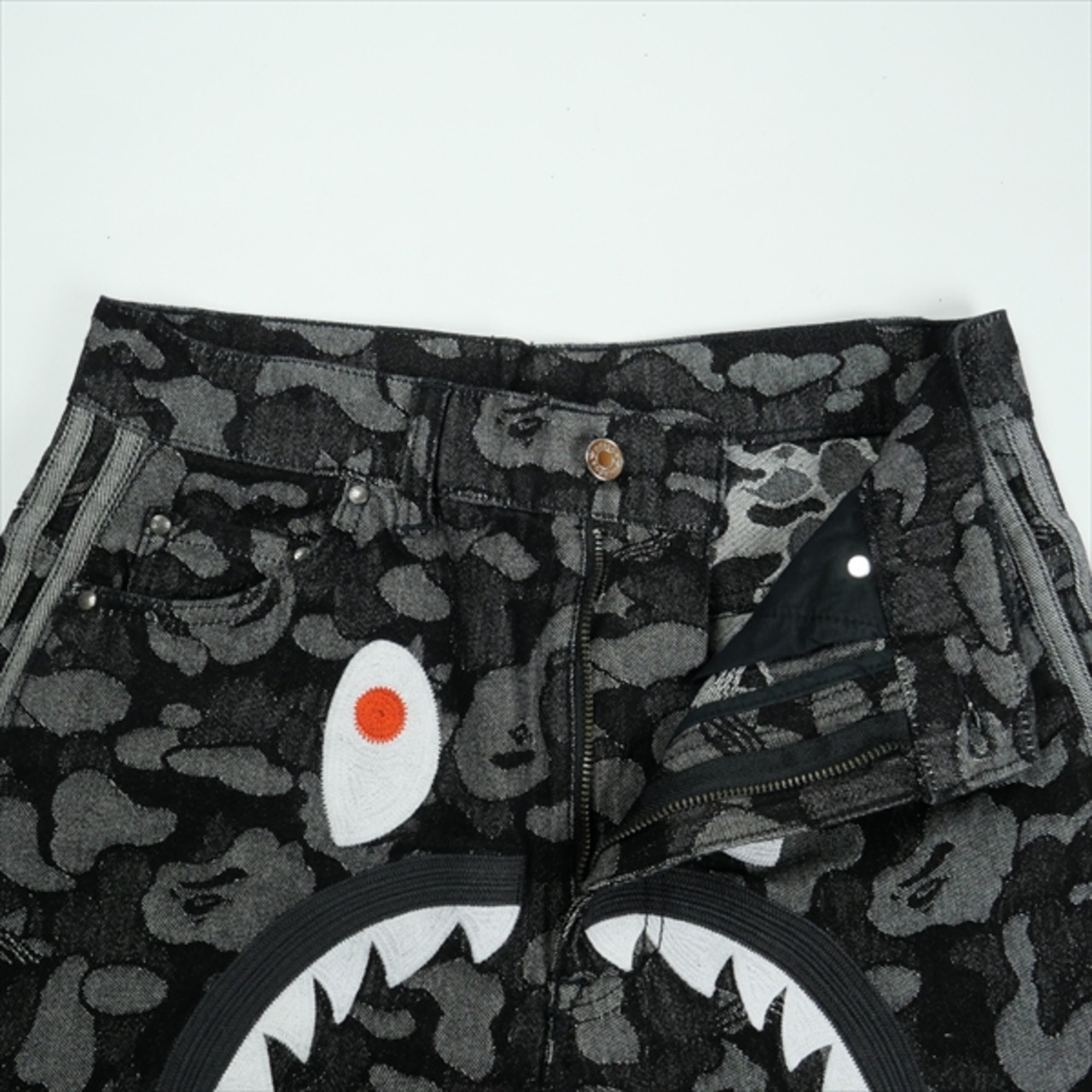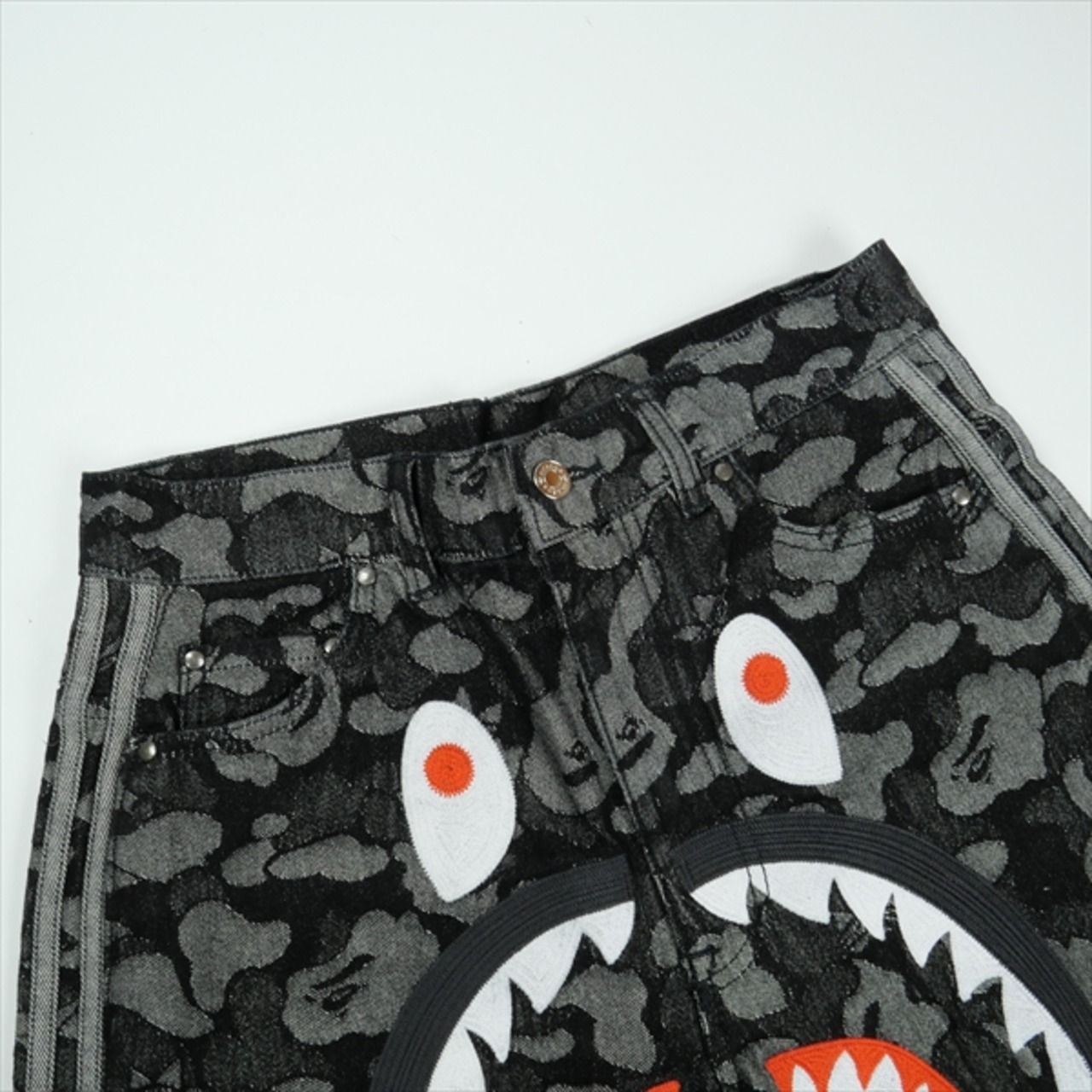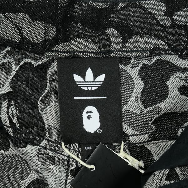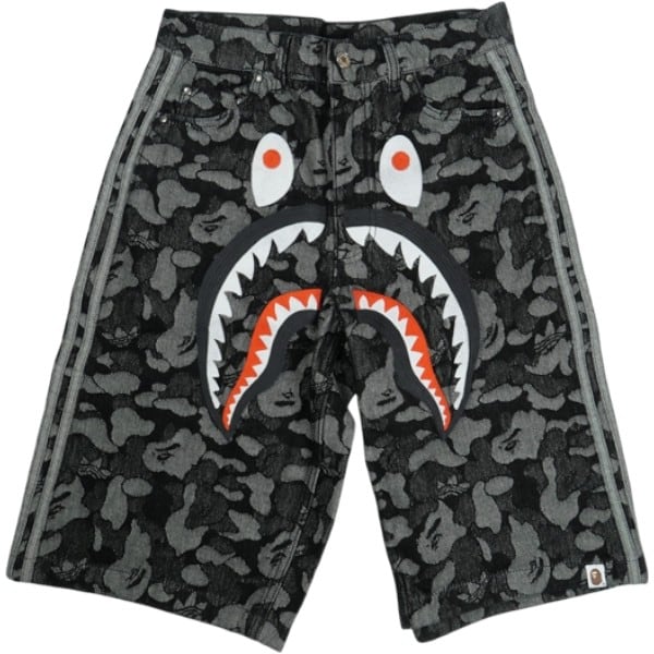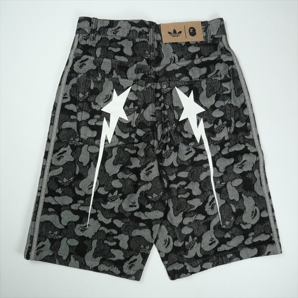 Size【XS】 A BATHING APE ア ベイシング エイプ ×Adidas Originals CAMO JACQUARD SHARK DENIM JORTS デニムショーツ 黒 【新古品・未使用品】 20836004