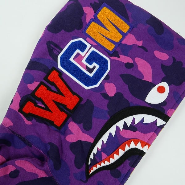 Size【XL】 A BATHING APE ア ベイシング エイプ 26SS SPLIT CAMO SHARK FULL ZIP HOODIE PURPLE/YELLOW シャークパーカー 紫 【新古品・未使用品】 20837073