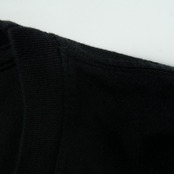 着用感があり、ボディ全体に毛羽立ちや色褪せがあります。左肩に穴のリペア跡があります。