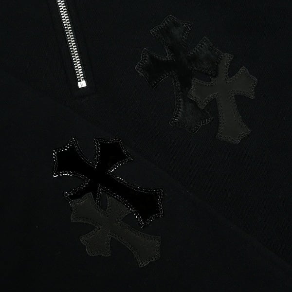 Size【XS】 CHROME HEARTS クロム・ハーツ Y NOT PAPER JAM 1/2 ZIP CROSS PATCH SWEATSHIRT BLACK ハーフジップスウェット 黒 【新古品・未使用品】 20836994