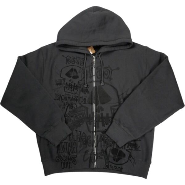 26SS SKULLS GAR DYED ZIP HOOD FADED BLACK ジップパーカー