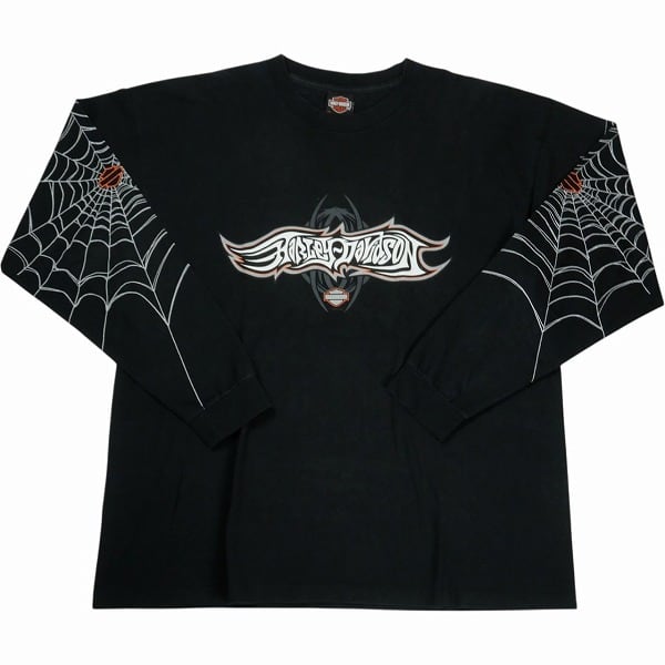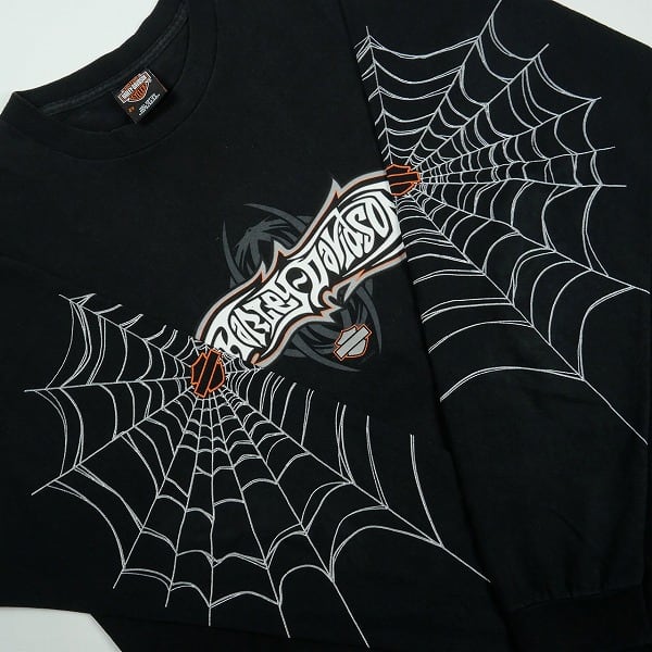 Size【XXL】 VINTAGE ヴィンテージ Harley Davidson ハーレーダビッドソン Spider Web LS Tee ロンT 黒 【中古品-良い】 20838645