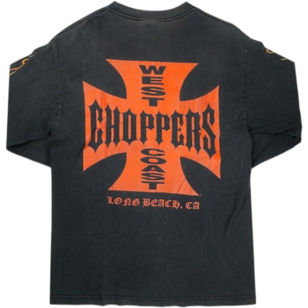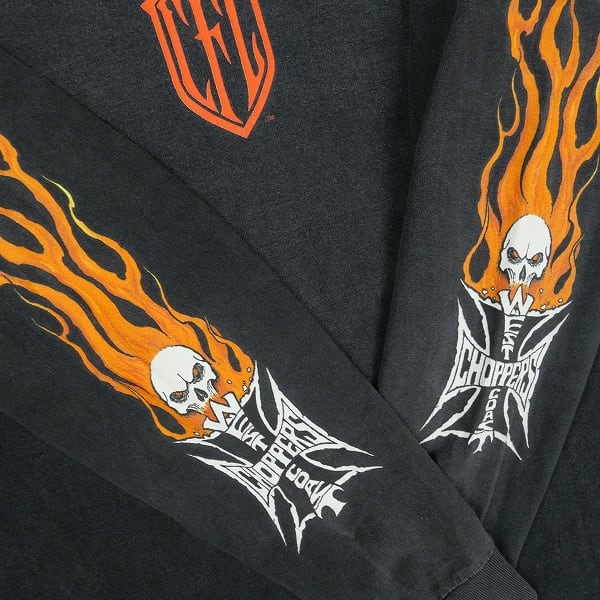Size【M】 VINTAGE ヴィンテージ West Coast Choppers ウェストコーストチョッパーズ Skull Flame Red Cross LS Tee ロンT 黒 【中古品-良い】 30006404