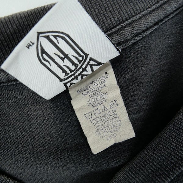 着用感があり、ボディ全体に毛羽立ちや色褪せがあります。プリント部分にひび割れがあります。